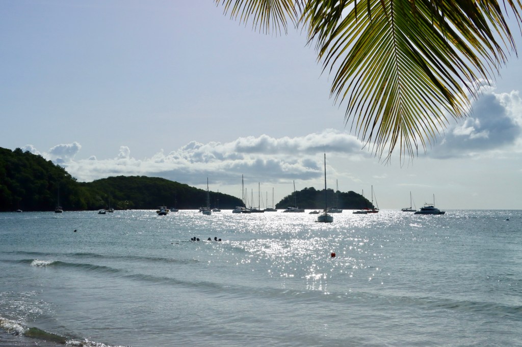 Nous avons continué avec la plage du Diamant. C’est une plage magnifique mais malheureusement il y avait des sargasses quand nous y sommes allés. Nous avons quand même profité des jolis cocotiers penchés pour prendre quelques photos.