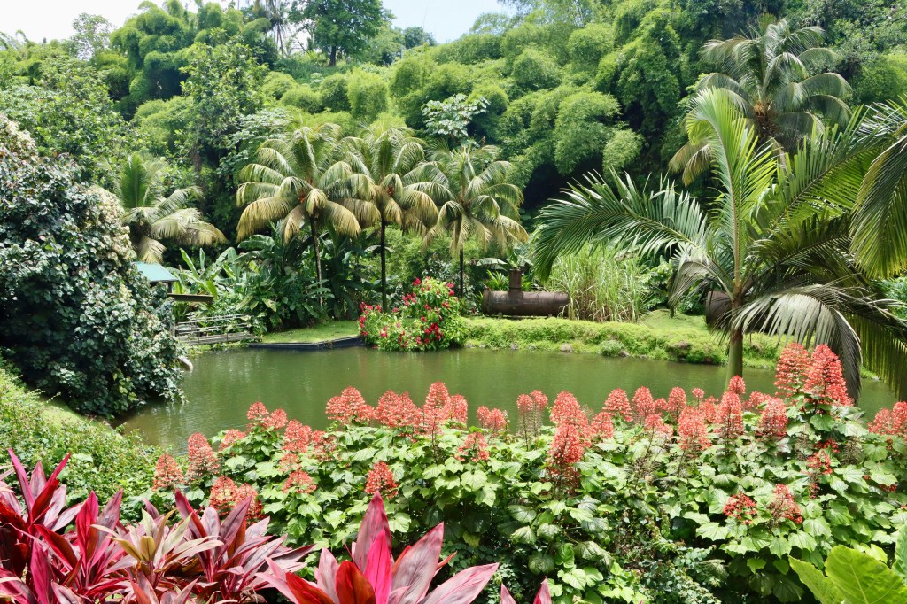 Le lendemain, nous sommes partis tout au nord de l’île pour découvrir la distillerie JM. Cette distillerie a été un véritable coup de cœur pour nous : ses jardins sont magnifiques et traversés par une rivière, l’accueil a été très agréable, la visite est libre mais riche en informations, il y avait peu de monde quand nous nous y sommes rendus et il y avait pas mal de choix de rhum pour la dégustation.