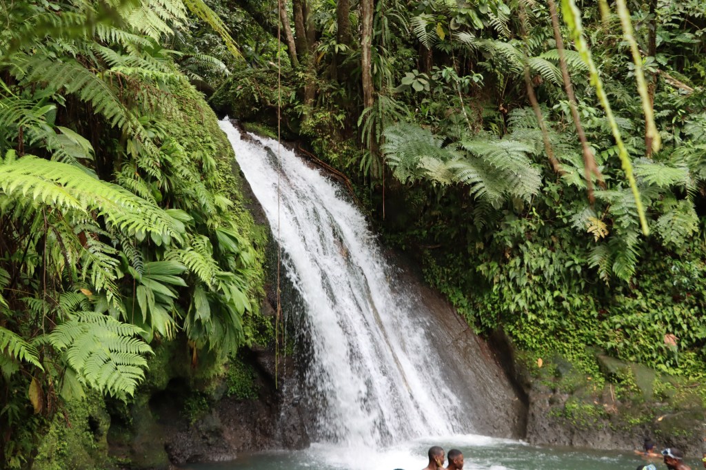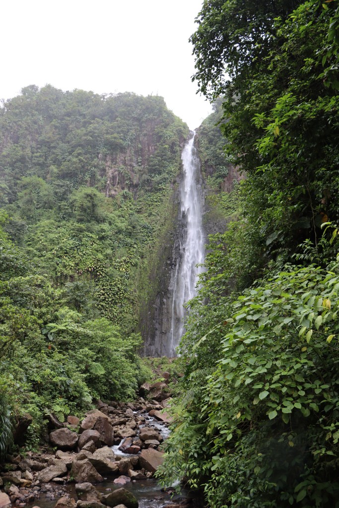 Le lendemain nous avons mis le cap sur les chutes du Carbet. L’accès au site est payant pour financer l’entretien des chemins. Nous avons commencé par aller voir la 2ème chute qui se situe à 25 minutes de marche sur un sentier entièrement aménagé. Il est impossible de se baigner à cet endroit mais la chute est vraiment belle à voir.