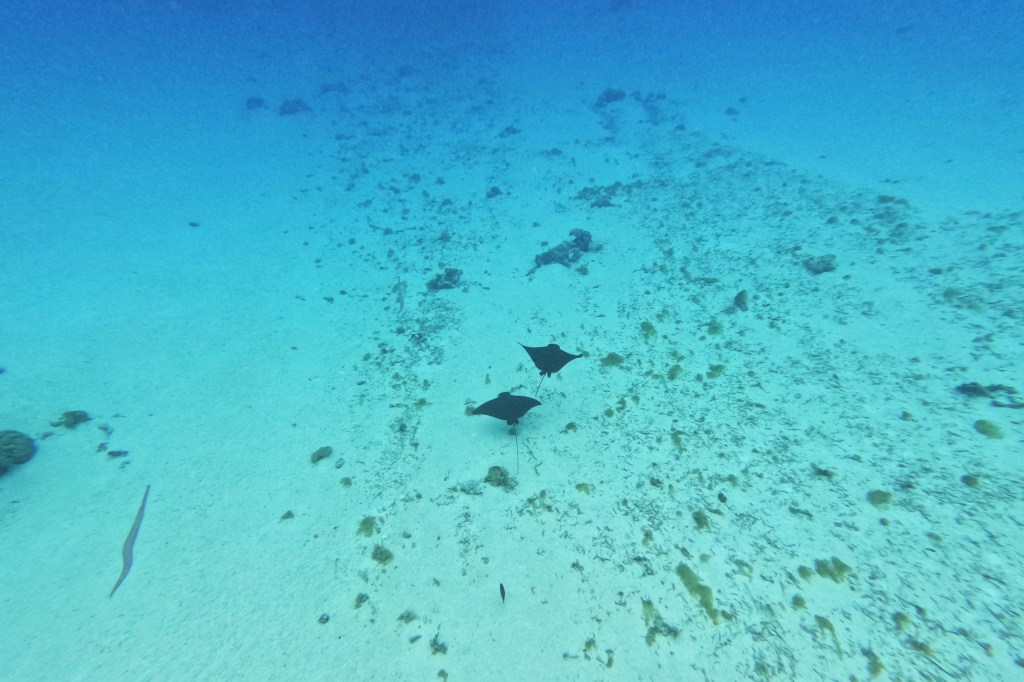 Nous avons réservé un tour privé de bateau avec Moana Adventure Tours. Après avoir aperçu des dauphins juste après notre départ, nous nous sommes arrêtés voir les requins à pointe noire et les raies. Malheureusement ils sont nourris avant l’arrivée des bateaux mais c’était une expérience incroyable de les rencontrer. Notre 2ème stop était au jardin de corail où nous avons pu voir de nombreux poissons et coraux. Nous nous sommes ensuite arrêtés près d’un motu où Nico a pu rencontrer les raies léopards. C’était incroyable de les voir nager, on aurait dit qu’elles volaient. Nous avons beaucoup aimé cette excursion qui nous a permis de faire le tour de l’île par les eaux et de faire des rencontres mémorables.