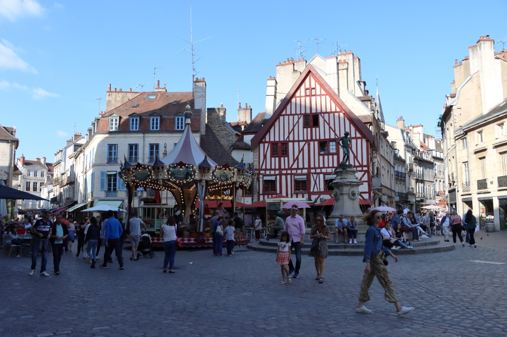 Nous avons ensuite descendu la rue de la liberté, principale rue commerçante du centre-ville, pour atteindre la place François Rude. Cette jolie petite place a un certain charme avec sa fontaine et son carrousel.