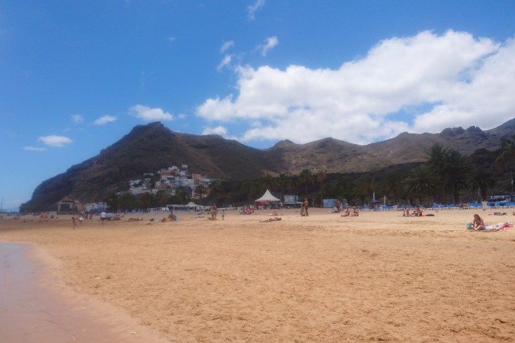 Nous avons ensuite repris la voiture pour aller sur la plage de las Teresitas de San Andrés qui est proche. Cette plage a été faite avec du sable qui vient des dunes du Sahara. Il y a une magnifique vue sur les montagnes qui se situent juste derrière.